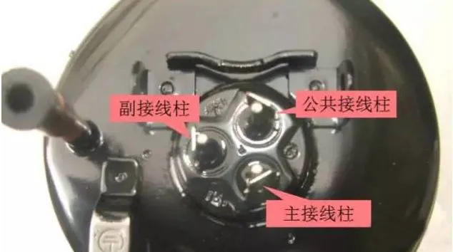 萬(wàn)用表的歐姆檔(一般200歐姆的檔位)測(cè)量每?jī)牲c(diǎn)之間的電阻值,阻值大的兩點(diǎn)(BC)為啟動(dòng)和運(yùn)轉(zhuǎn)繞組。剩的那個(gè)點(diǎn)(A)是公共點(diǎn)。然后把所測(cè)量的兩個(gè)點(diǎn)(BC)再分別跟公共端連接,阻值較大的是啟動(dòng)繞組,小的為運(yùn)轉(zhuǎn)繞組。三點(diǎn)之間阻值關(guān)系為:BC=AB+AC
