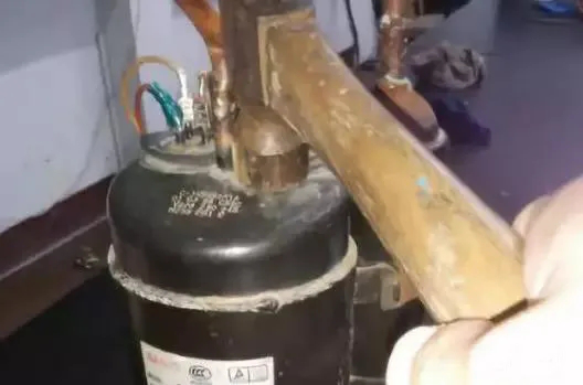用手指按住吸氣管,若感覺(jué)到有吸氣壓力, 則表示壓縮機(jī)正常。當(dāng)把手指移開(kāi)時(shí), 如果沒(méi)有感覺(jué)到任何吸力,說(shuō)明壓縮機(jī)沒(méi)有吸氣能力。如下圖所示: