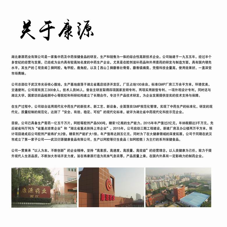 康源藥業公司坐落在中國藥谷——湖北省葛店經濟技術開發區,占地面積七十余畝,擁有生產設備一百多臺套,建有標準的 GMP 廠房一萬余平方米?,F有員工 150 名 , 其中專業技術人員 40 名,中級以上專業技術人員 20 多名。公司建立了非常完善的生產管理制度和嚴密的質量保證體系,質保部化驗室配有先進完備的檢驗設備,員工上崗前都要經過嚴格的培訓,藥品生產嚴格按照 GMP 的要求進行,員工的一切行為都依規章制度而行,廠區環境優美,生產、生活秩序井然??翟词且粋€名副其實的現代化花園工廠。