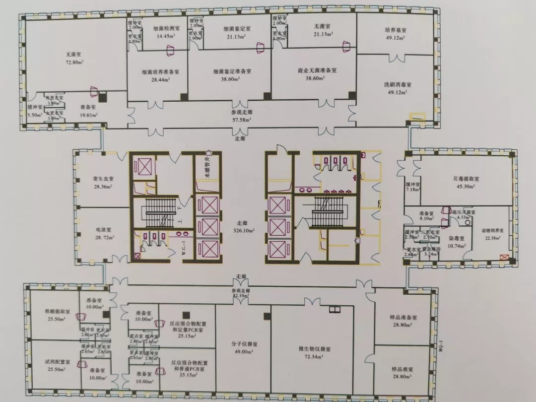 實驗室必須保持一定的溫度梯度和氣流狀況。一般情況下,實驗室相對于走廊以及非實驗室區保持負壓,氣流從低危區流向高危區,整棟建筑相對于外界必須保證正壓以防止有害的未經過過濾處理的氣體滲入。