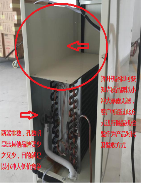 在除濕機行業,同樣的款式,價格更低,最常見的情況就是除濕機產品使用劣質原材料和零部件,比如壓縮機采用劣質的,甚至是翻新的,送風風機采用低品質的風機等等。