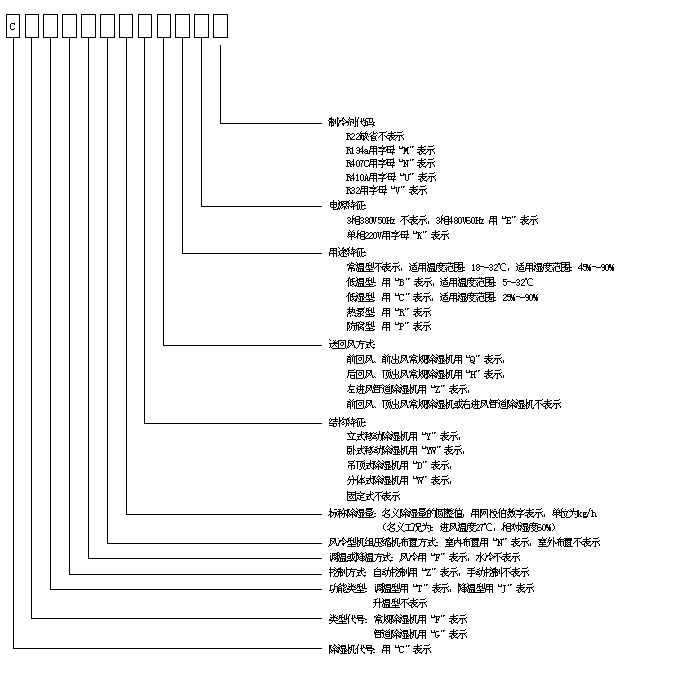 zhongyou/上海眾有除濕機(jī)產(chǎn)品型號(hào)表示方法